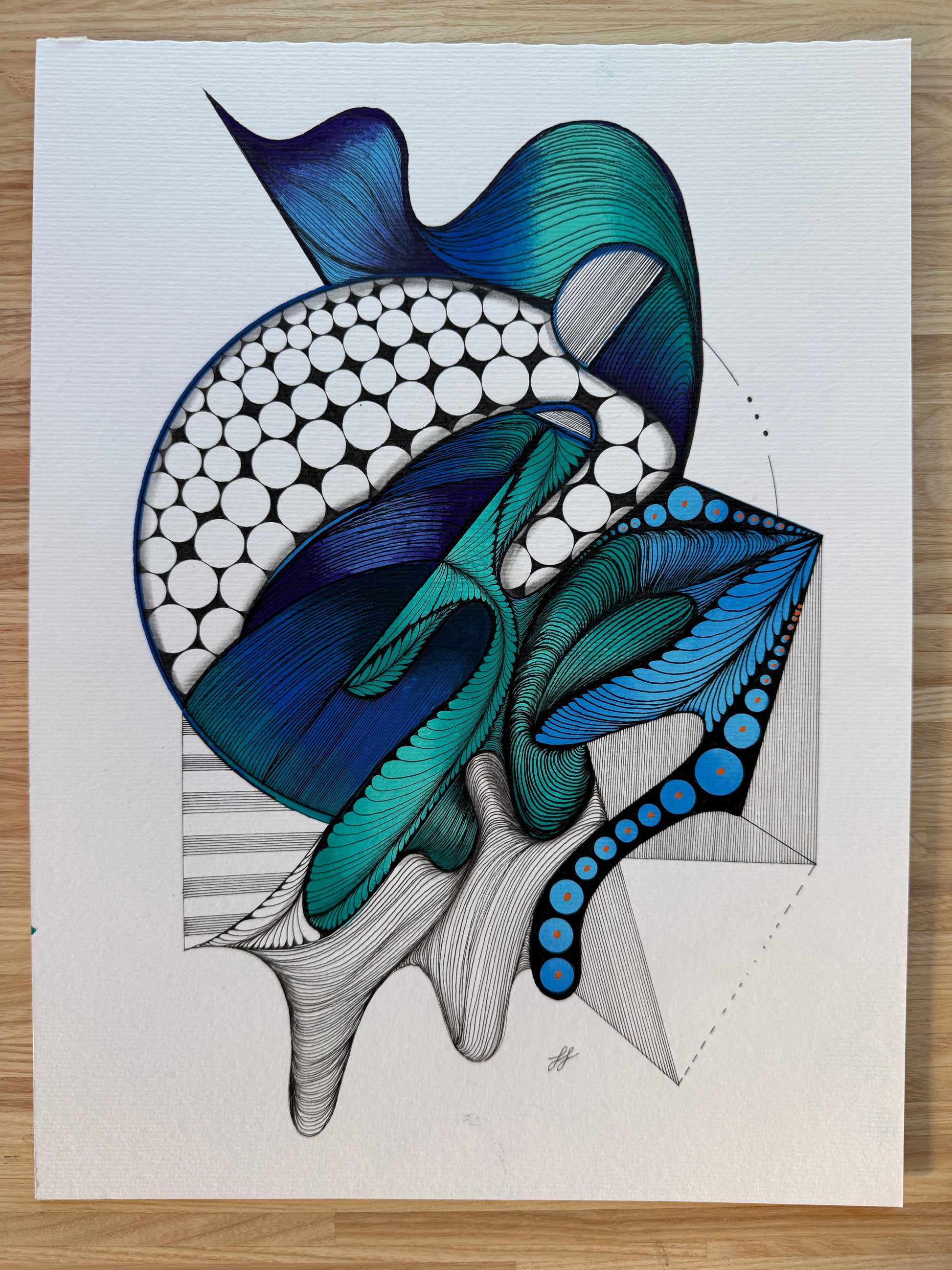 Archival ink and Acrylic paint marker on Acrylic paper